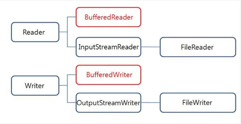 추가로, InputStreamReader / OutputStreamWriter를 사용하는 경우 한 문자씩 읽지만 버퍼링을 하게 되면 입출력 스트림으로 부터 미리 버퍼에 데이터를 갖다 놓기 때문에 효율적이다.